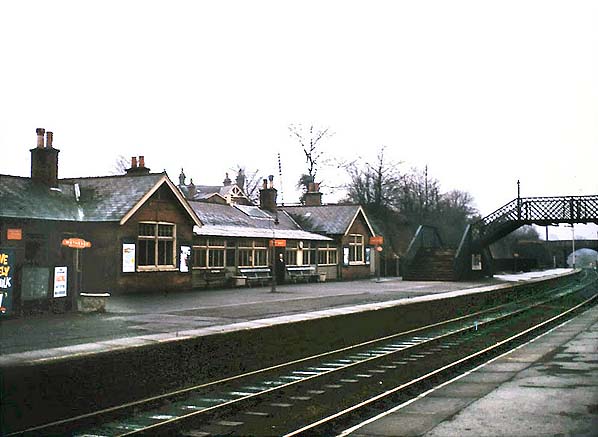 A long timber building with a pitched slate roof, containing toilets and waiting facilities, was provided on the down platform. There were water columns at the north end of the down platform and south end of the up platform. The platforms were spanned by an unusually wide lattice footbridge – not of the standard NER pattern - to accommodate the large number of horse race-goers who were expected to use the station. This usage was reduced with the opening of Wetherby Racecourse station c1924. The racecourse station was last used on 18 May 1959 with race-goers returning to Wetherby station after that day. From there buses, for which there was an additional charge, would take them to the racecourse and back again. The advertising flyers for the race day specials (see below) sometimes referred to the station as Wetherby Town.