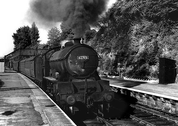 Wetherby station up platform in July 1957. 62765 was built to the Gresley D49, Hunt Class design in 1934. Entering service as 2765 on 11 October, and named 'The Goathland', it lasted until 16 January 1961, when it was withdrawn from 53A, Hull Dairycoates shed, to be cut up three months later at Darlington works.