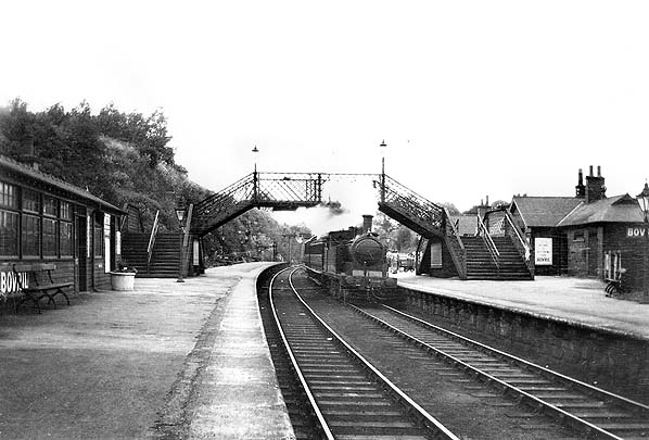 A Leeds train waits in the up platform at Wetherby station c1906. Note the unusually wide footbridge to accommodate race-goers arriving by special trains for the Wetherby races.