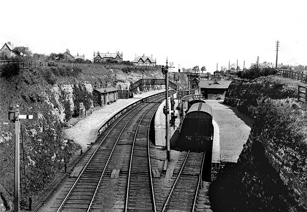 Wetherby station looking north-east from Linton Road bridge c1910. One of two horse and carriage docks is seen in the foreground.