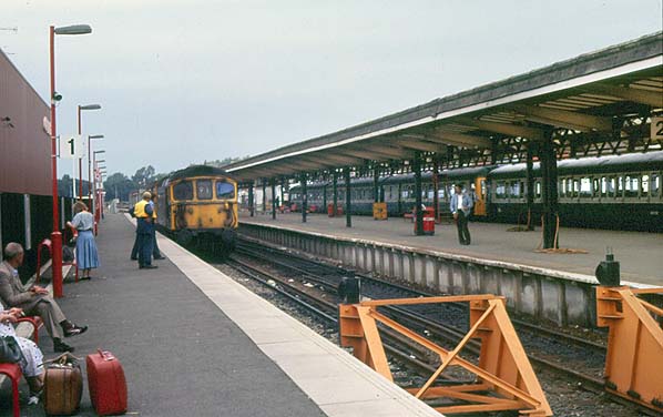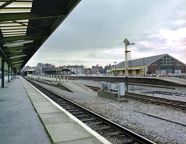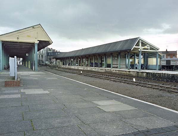 Regular boat trains to Weymouth Quay ceased on 1 October 1985, although the station was still occasionally used for special services, the last being a Pathfinder railtour on 2 May 1999. In was announced in 1983 that Weymouth station was to be rebuilt. The original platforms were closed leaving only the island excursion platform in use. By late 1984 all the buildings on the east side had gone and those on the west side were being de-roofed. The three central roads had been lifted as had the bay line used by LSWR/Southern trains. The carriage sidings adjacent to Jubilee Gardens were still there but overgrown and out of use. Demolition of the old station was completed in the spring of 1986, and a new station building was constructed at the town end of the excursion platform. Platforms 5 and 6 were renumbered 2 and 3, and a new short platform 1 was opened in July 1987 mainly for use by Western Region trains. Although the current station is a mere shadow of its former self, the extension of third-rail electrification from Bournemouth in 1988 has given the station much improved services to London. The current station is a relatively modern structure; before rationalisation in 1986 the old Weymouth station was far too big for the quantity of traffic that it was handling.