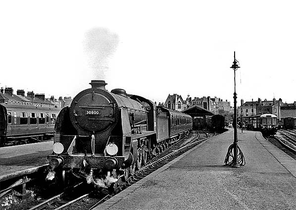 In 1939 the GWR planned to spend £80,000 on two new 1,000ft platforms to cater for summer excursion traffic. As part of this scheme, the old LSWR shed was closed in January 1939 and quickly demolished to make way for the new platforms; Southern Railway locos then used the GWR shed, which had first been proposed back in 1927. As work on the reconstruction was about to start Britain declared war on Germany, the railways were taken into Government control and all work was halted.