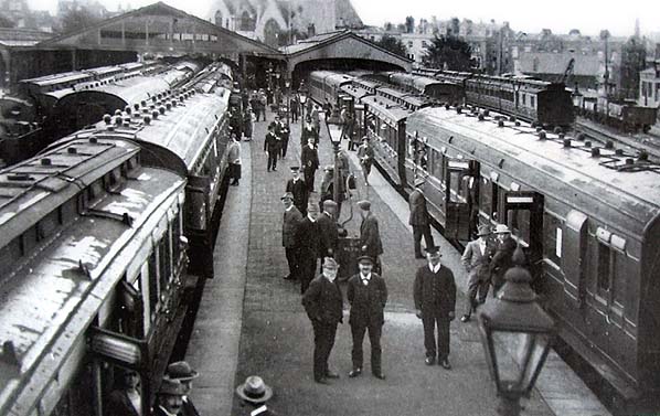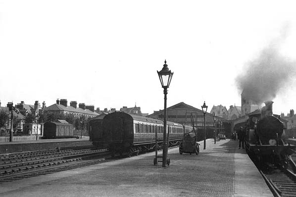 During the latter half of the nineteenth century the goods shed was rebuilt, the platforms were lengthened and a number of signal boxes were constructed. By the turn of the century the station comprised five platforms and a large goods yard with numerous sidings. The LSWR opened a two-road engine shed on 20 January 1857. The GWR originally had a two-road broad gauge shed which opened on the same date with the two sheds sharing a turntable. This was replaced with a larger three-road shed ¾ mile to the north in June 1885.