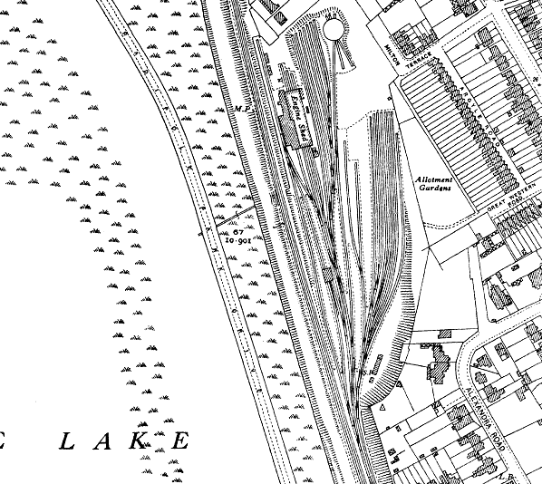 The second GWR engine shed was almost a mile north of Weymouth station. It is seen here in 1950. It opened in June 1885