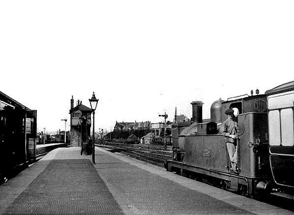 Weymouth No 3 platform looking north in 1935. Weymouth Town signal box is seen