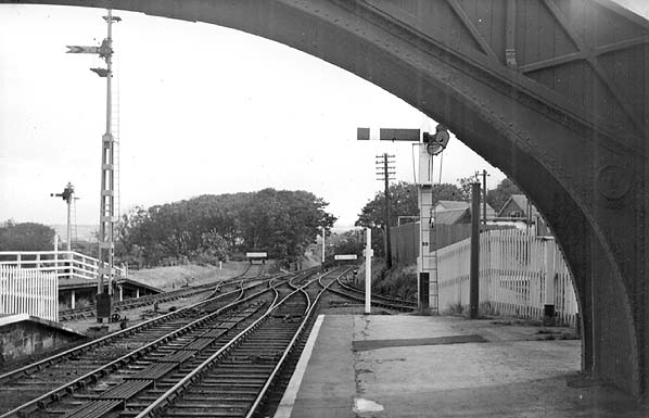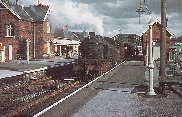 There was a covered footbridge at the south end and a parachute water tank and wooden signal box on the ‘up’ platform.
