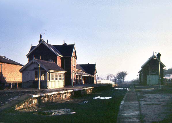 The main station building, was a substantial brick built structure incorporating the stationmaster's house; this was located on the 'up' platform where there was also a signalbox. There was also a brick building on the 'down' platform that included a long covered waiting area.