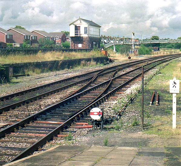 Looking north from Whitchurch Station in July 1993, a disused loading bank is seen on the left.