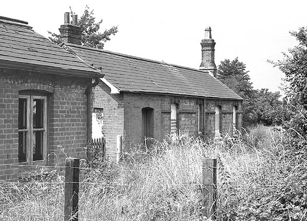 White Colne Station in July1975 - the station building was located on the other side of the level crossing Photo by Nick Catford