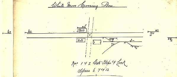 When the line had opened it was a single track railway but during 1875 it was doubled. A number of new signal boxes were provided including at White Moss Crossing. A 16 lever box (12 active levers and 4 spare) was provided to control the junction and the main line level crossing. I was located on the north side of the crossing on the east side of the line. The new boxes were inspected on 22 October 1875 but were found to be incomplete. It is likely though that they would have been fully operational within a few weeks.