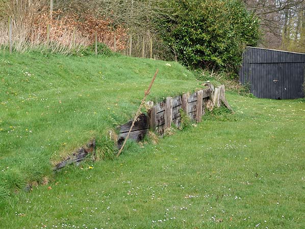 ![]() The remaining section of platform at Whitehall Halt in April 2008. This is the only station on the Culm Valley line with any part of the station remaining Photo by Roy Lambeth