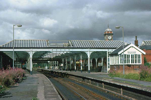 Looking east from the south platform of Whitley Bay station in August 1975.