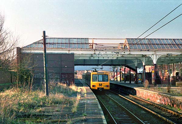 Looking west from a rather unkempt south platform at Whitley Bay in January 1998.