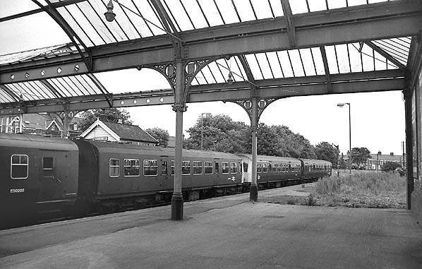 A DMU heading towards Tynemouth calls at the north platform c1972.