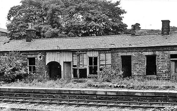 ![]() The passenger facilities at Whitworth are seen on 19 August 1967, the day when the last freight train left the station. The platform has been used for storing (or dumping?) pipes and is disappearing under a mat of vegetation. The stone building is modest and functional, and its most interesting feature is the timber screen enclosing what was intended to be an open-fronted waiting area; however the structure is deteriorating with slates and window glass missing, and the timber screen is in a bad way. The rails would be removed by the end of 1967 and the building demolished by 1971, the platform outlasting it. A grass bank in the grounds of Riddiough Court, a sheltered housing scheme, is now found on the site of the platform and the station building.
