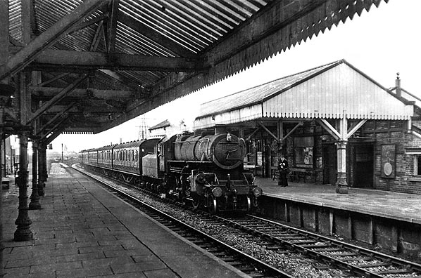 At the grouping in 1923 the GCR became part of the London & North Eastern Railway (LNER) whilst the MR became a constituent of the London Midland & Scottish Railway (LMS). The CLC remained a separate company, owned jointly by the LMS, who held a third share, and the LNER who held two thirds. CLC services through Widnes Central were hauled by LNER locomotives. The LMS summer timetable for 1932 showed ten up and eleven down trains on weekdays (click here to see table of trains). On Sundays there were three up and two down services.