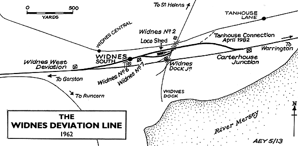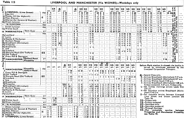 Notes: At the time of opening Widnes station was served by trains between Liverpool and Manchester and shorter workings along the route. Some trains from Liverpool terminated at Widnes station. St Helens line trains also served the station, running between Ditton Junction and St Helens. When the Garston & Warrington line had originally been built its owner (The St Helens Canal & Railway Company) had seen it as a main line. The LNWR took over the route on 1 August 1864 and they saw it as a secondary passenger route but an important freight artery.