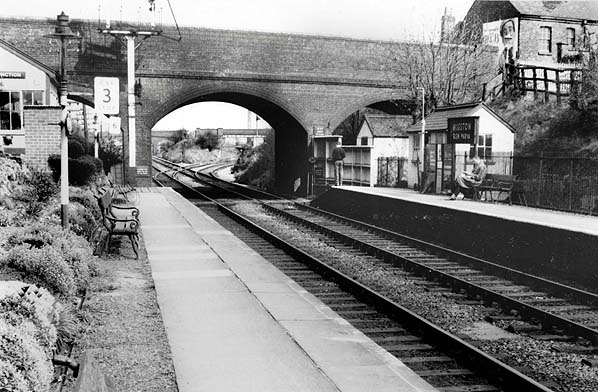 Wigston Glen Parva station looking east from the up platform c.1960s. The waiting shelter seen on the right was added in 1913.