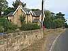 The station had staggered platforms with the the main station building was on the up platform on the west side of the level crossing. The down platform with a waiting shelter was on the east side of the level crossing. There was a footbridge on the west side of the crossing.