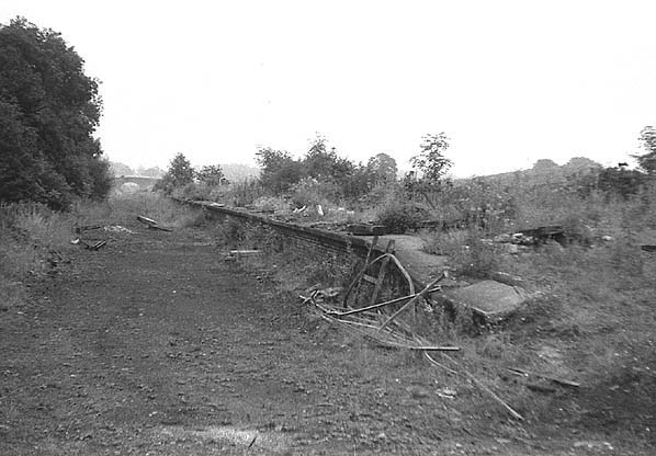 The goods yard was on the down side of the line opposite the up platform. There were originally two sidings, one serving a goods shed and the other serving coal drops. By 1894 a third siding had been added.