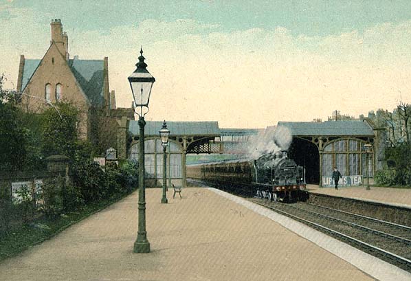 was located on the northbound platform. It was a brick building in a Gothic style similar to that at Didsbury. The building was mostly single storey but included a two storey station master’s house to the right of the main station entrance. Booking facilities, a parcels office, ladies’ and gentlemen’s waiting rooms and toilets were all accommodated in the building. An iron footbridge complete with roof cover gave access to the southbound platform. Both platforms were provided with canopies that gave shelter from the weather.