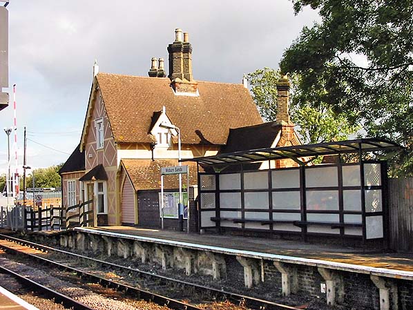 Woburn Sands Bletchley platform in December 2004. The porch the right of the bay window has now been boarded up. When Silverlink took over the operation of the line in March 1997 the provided long bus shelters on both platforms and the obligatory new signage.