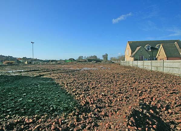 The site of Woburn Sands up side goods yard in February 2014. New housing now occupies the site of the cattle dock on the right. The large timber goods shed was in the centre.