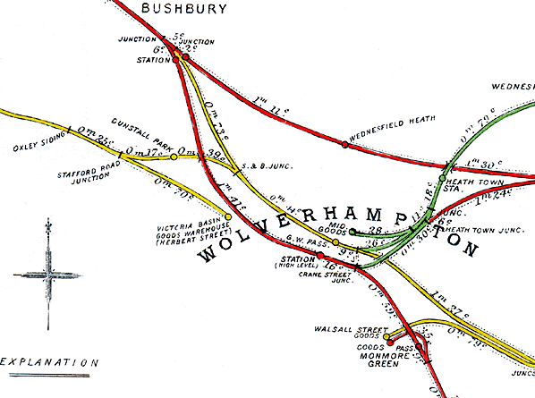 At the time of opening Wolverhampton was served by trains of the OW&WR that ran to and from Oxford via Worcester.