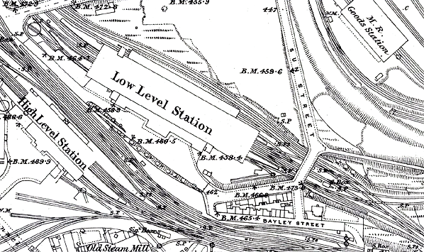 On 1 November 1872 the Midland Railway (MR) made a connection with the GWR just to the south-east of Wolverhampton Low Level station when they opened their Wolverhampton and Walsall Railway. A short distance to the east of the Low Level station the MR opened a goods station. During the early days of the Wolverhampton and Walsall railway construction the MR had thought that it would run passenger services to and from Wolverhampton Low Level but it became more involved with the LNWR, and via a connection to the High Level station its trains ran that way instead.