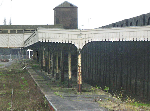 Wolverhampton Low Level Station No. 2 Platform (to Birmingham Snow Hill), with the bay Platform 3 in 2004 Photo by Steven Jukes