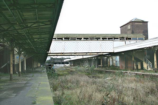 Wolverhampton Low Level Station in November 2005. Platform 1 (to Birkenhead) left and 2 (to Birmingham Snow Hill) right.