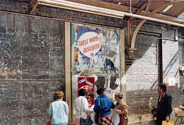 On 8 April 1987 open day visitors look at old posters that could still be seen on the up platform.