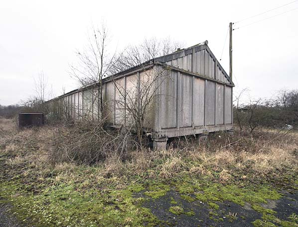 Woodhall Junction grain store in the goods yard in January 2010. Note the building stands on staddle stones to stop rats and mice getting in.