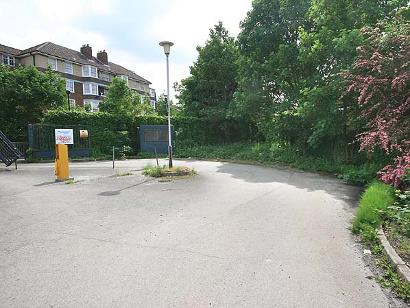 The site of Woodstock Road level crossing looking towards Hammersmith & Chiswick. The blue hut is
