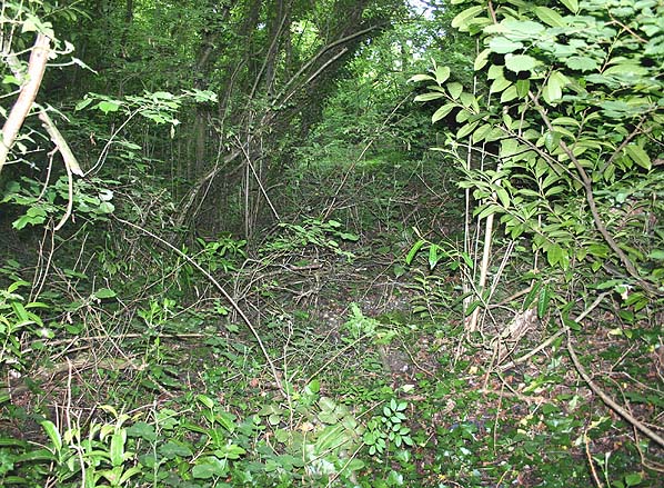 The site of Wootton Station in June 2005 - everything was cleared away or covered over by the new ramp from the road during the construction of the cycleway Photo by Nick Catford
