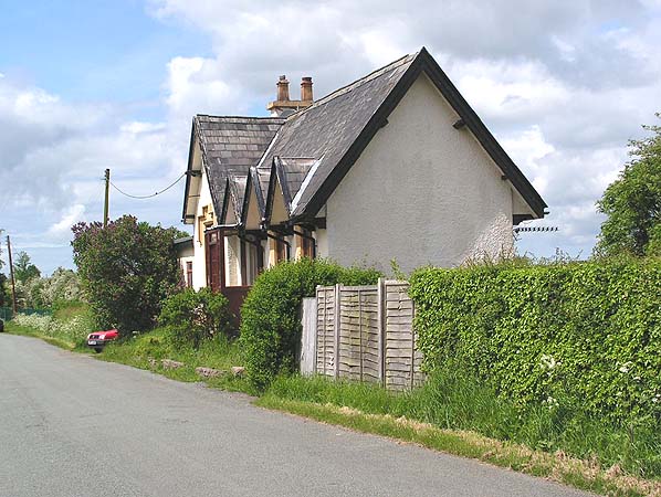 The roadside entrance to Worleston Station on Station Road in May 2006. The station building is set into the side of a cutting with the entrance on the upper floor. Photo by Paul Wright