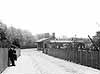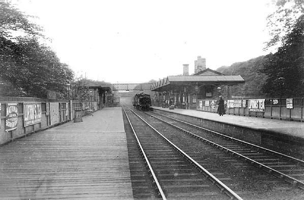 ![]() A view facing south-east towards Eccles c900. The practice of covering sleepers with ballast was outlawed c.1919. The station approach road was at the extreme left and a siding ended at a dock behind the half-panelled fence on the left. Note the LNWR slotted post signal with arms for either direction and lamp and lens lower down the post. Note, too, the points indicator beneath the running-in board. The station was well provided with gas lighting and the suspended lamps beneath the canopy are rather splendid. The casement lamp on the footbridge has one side blacked out, presumably to avoid distracting, or confusing, drivers of approaching trains. There would have been another of these lamps at the other end of the bridge. The vehicle stabled on the right is a LNWR 26ft 1in passenger brake from one of the batches with slab sides and prominent roof overhang. The eyes on the edge of the roof presumably carried a train's communication cord. The vehicle was wearing the LNWR plum and white passenger stock livery. The 'Guard' inscription is clearly seen on the relevant door panel, while there were two sets of double doors per side for luggage etc., plus small compartment doors at each end where the ventilation louvres can be seen. The vehicle number was located on the rebated panel above the grab rail on the ogee (ducket) but is not discernible.