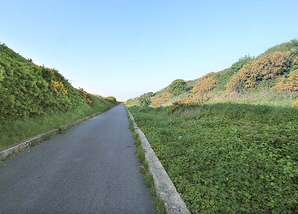 ![]() Wyke Regis Halt looking south along the former military road, now part of the Rodwell Trail, in May 2013. The platform gets heavily overgrown in the spring and difficult to see.
