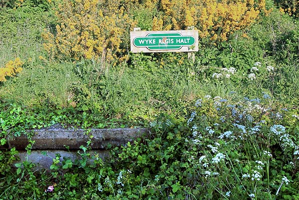 Reproduction totem sign at the north end of Wyke Regis Halt platform in May 2013.