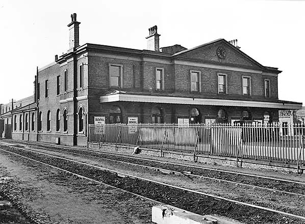 Photo from Andy Barton collection ![]() Photo from Andy Barton collection ![]() Part of a photographic survey of South Town station taken on 2 February 1933. This time we have one of the very few views which show the tracks to the goods depot in any detail. The level crossing over Southtown Road is behind and right of the camera. The 'four foot' (between the rails) appears to be filled with ash, presumably to aid the horses which pulled wagons to and from the goods yard. Later, the surface was remade and the rails brought flush presumably due to the replacement of the horses by a tractor. Out of view to the left was once a small ironworks. At the far end of this building and at a right angle to it was the stable block for the horses. Of the ground floor windows along the south side of the station, the first pair (either side of the chimney breast) were parcels offices and behind which was the stationmaster's lobby and staircase. The remainder of the ground floor windows were, at this time, offices, waiting rooms and toilets. In 1952 most of these rooms were to receive considerable alteration with some of the windows becoming hatchways for, it is thought, the loading of parcels directly into vans. On the first floor, the first two windows were presumably the stationmaster's upper landing but no plans have been found showing the layout of the first floor. The remaining three windows are something of a mystery as no plans show a stairway leading to the rooms behind them, so access must have been from the first floor. In addition, the windows do not match the others on the first floor which might suggest they were a later alteration. Surviving railway company minutes contain numerous references to minor alterations over a great many years and some of these refer to changes to doors and windows, or additional doors and windows, but do not go into the finer details.