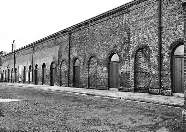 Photo from Andy Barton collection ![]() Part of a photographic survey of South Town station taken on 2 February 1933. This time we are looking at the 25ft-high wall along the north side of the station, which was largely demolished in 1952 save for the section facing onto the concourse. As a point of reference part of the station building can be seen in the left background. The lighter area of wall marks where there had once been an awning, removed sometime after 1920. This area had been used for cabs waiting their turn at the rank. What appear to be wooden doors are in fact panelled-over archways but with lights in their tops. As far as can be ascertained all the arches were original features of the station's design, whether bricked up, blocked off with wood or otherwise. The idea would have been to remove the starkness from otherwise blank walls and provide for future requirements for doorways and windows should such become necessary. Indeed this did happen and records from the earliest years right up until BR days mention arches being opened up, bricked up, doorways converted to windows or vice versa. The new refreshment room provided in 1952, which was actually a combined waiting and refreshment room according to surviving British Railways plans, stood at the far left background.