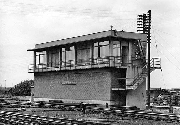 Photo from Berney Arms web site ![]() The exterior of South Town signal box on 15 May 1947. The box was just four years old at this time, the original having been damaged by the Luftwaffe. The nameboard, like the box's equipment, is thought to have been salvaged from the original box. On the roof is what appears to be a small floodlight, perhaps to aid maintenance of the telegraph pole if necessary during the hours of darkness. The meaning of the letters EP scrawled crudely onto the brickwork is not known. Just visible in the left background, marked by a signal, is the connecting line over Breydon Viaduct which linked Gorleston with Yarmouth Beach. This line was destined to close in 1953, due, supposedly, to expensive repairs
