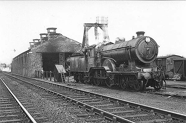 Photo by British Railways Chief Civil Engineer, King's Cross, and courtesy of Bob Randall ![]() Yarmouth South Town locomotive shed on 19 May 1951. This is the original shed as constructed under the Yarmouth & Haddiscoe Railway Act and which was to stand for just short of a century until total rebuilding in 1956. In the left background is just visible the wartime rendition of South Town signal box, the station being beyond it and obscured from view by the shed. Posing for the camera is a then resident of South Town shed, Class D16 4-4-0 No.62521. New in 1902 as GER Class S46 No.1870 she was from the early batches following on from class doyen No.1900 'Claud Hamilton' which, built in 1900, was to win gold at the Paris Exhibition of that year. Under the LNER No.1870 was classified D14 and in 1935 was given an LNER Diagram 28A superheated boiler which catapulted her into the ranks of Class D16; the designation by which the 'Clauds' became best known. Usually accredited to James Holden, the design was actually largely the work of Fred Russell, Stratford's Chief Draughtsman. Like her sisters, No.1870 underwent several renumberings until becoming LNER No.2521 in 1946 and then in 1949 British Railways No.62521. The form in which No.62521 is seen here is that with which the 'Clauds' are best remembered, perhaps obviously so given the passage of time, but this form bore only a vague resemblance to the original design which was rather more ornate and typical of the late Victorian and Edwardian periods. Dual braked, air and vacuum, No.62521 was to leave South Town in April 1953 and following a spell of being jostled between Cambridge and King's Lynn sheds she was withdrawn from the latter shed in February 1958 and scrapped shortly afterwards.