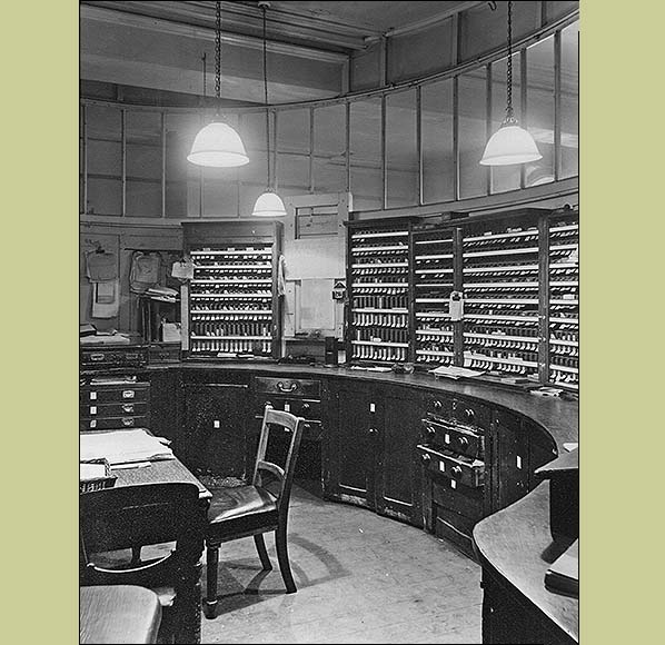 Photo by British Railways Chief Civil Engineer, King's Cross, and courtesy of Bob Randall ![]() The interior of Yarmouth South Town ticket office also taken on 3 October 1950 despite the calendar claiming otherwise. With the external view it was mentioned that the interior view would make it obvious that only one teller position was in use, thus here is the evidence. The camera is looking in through the stable door seen on the left of the external view. In the days when computers existed only in science fiction and at Bletchley Park or GCHQ a railway ticket clerk's job was very 'hands on', involving much work over and above selling tickets and the office desk can be seen on the left of this view. The various drawers would have contained fare books, ticket route availability lists, timetables and a host of other official papers. It will be noticed that it was not practical for the clerk to sit at the teller position, or at least not comfortably. This was normal for the time as the clerk would need to move along drawing tickets from the various racks seen here. The racks contained what were known as 'tubes', in which tickets were held for specific destinations and of various types. The tickets seen here were of course of the Edmondson type. These were largely pre-printed and when sold would be validated by the clerk by means of the tall, narrow device seen on the counter below the calendar. There were numerous types of ticket; 1st class; 3rd class (until 1956); Single; Return; Privilege; Forces Leave (also known by the LNER as 'Furlough' tickets); Adult; Child; Platform and so on. There were also semi-blank tickets which clerks filled out by hand. These might be used, for example, for obscure destinations for which pre printed stocks were not held. Numerous examples of Edmondson tickets can be seen throughout the ‘Disused Stations’ website. As complex as the system may sound it was nevertheless much simpler and better understood (by railway staff and the public) than it is today. The Edmondson system came into use in 1842 and continued in use in Britain until June 1989, the final station to issue them being Emerson Park (Romford - Upminster line). However, they are still produced for use by heritage railways and the railways of a handful of other countries, mainly in Asia, still use them as of 2017. British Rail, however, was by no means wedded only to Edmondson tickets. Conductor-guards issued a variety of different types of paper ticket according to area and in the 1960s BR introduced a range of large (approx. 6in x 2½in) tickets on which many details were printed at the point of sale. These were the forerunners of the orange APTIS and PORTIS tickets which are now themselves obsolete and have been replaced by fully computerised systems, albeit still on orange cards which makes the differences perhaps not immediately obvious to all-but frequent users of the railways. When a station closed or, as in the case of South Town, became unstaffed, remaining ticket stocks would be sent for accountancy and then either destroyed or sold to collectors for a nominal sum. Many of the surviving unissued tickets were those intended for destruction but which for some mysterious reason never made it to the incinerator. The most prized tickets for collectors were pre nationalisation examples, many of which were still issued by BR, or lingered in BR tickets offices unsold, owing to the journeys they covered being in little demand. When this photograph was taken in 1950 the tickets tubes very likely still contained a number of LNER tickets and possibly some GER examples; when issuing these the clerk would strike out the by-then-invalid fare and apply the relevant fare by hand. It is unlikely that modern tickets will achieve the same collectors’ following as the Edmondsons, in part because line and station closures are now all-but events of the past.