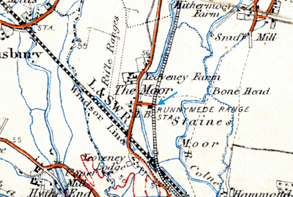 In 1890 the Metropolitan Rifle Range Company was formed to help find a suitable site. One of the directors of the company was also a director of the Staines & West Drayton Railway so it came as no surprise that a location on Staines Moor, close to the railway, was selected. The rifle company then approached the Great Western Railway and asked if they would consider building a station.