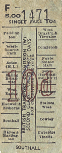 The Western Region route from Staines to central London was not ideal for commuting. The distance between the branch terminus and Paddington was 19miles 39chains, and journeys often involved a change at West Drayton. The Southern line from Staines Central however, although of similar length, offered the convenience of regular through services and the efficiency of electric traction. The only advantage of travelling from Staines West was that the trains were less crowded and it was easier to find a seat!