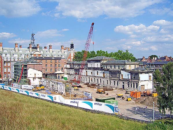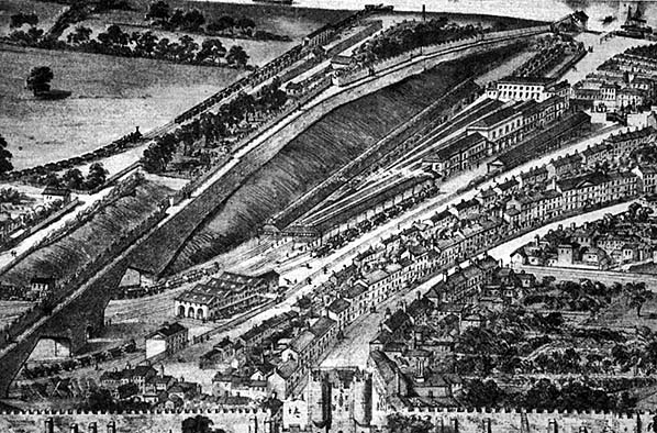 The building of a station within the walls of the historic city of York required a degree of sensitivity as plans to demolish the walls had only recently been defeated. The solution was to create a Tudor-style arch in the wall which allowed a double track railway to enter.