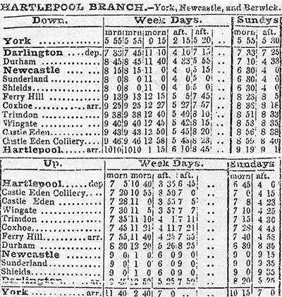The March 1850 Bradshaw timetable shows services operating between York and Birmingham, Harrogate, Hull, Leeds, Newcastle, Scarborough, Whitby and of course London (Euston). The fastest journey time between York and Euston was 6 hours and 5 minutes; Newcastle could be reached in 2hr 20min.